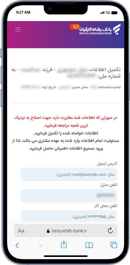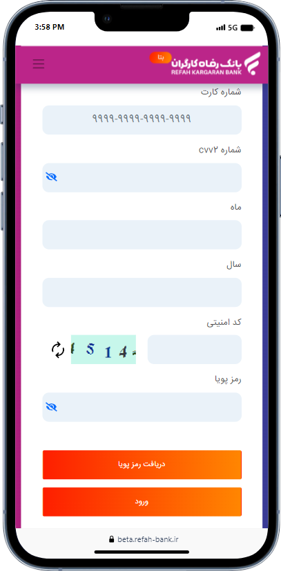 مرحله ۱ – مراجعه به سامانه بتا بانک رفاه به آدرس beta.refah-bank.ir و تکمیل اطلاعات و ورود به سامانه بتا رفاه