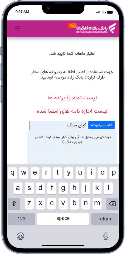 مرحله ۷ – پس از تایید و فعالسازی اعتبار، درخواست خرید برای پذیرنده ارسال خواهد شد