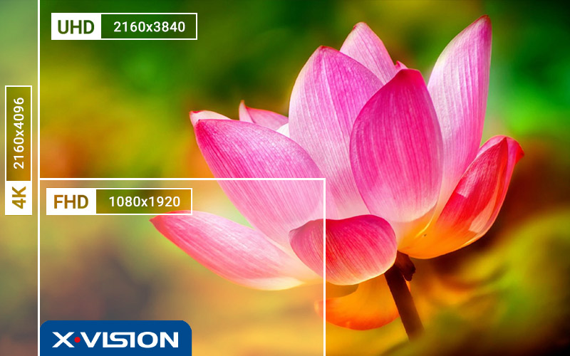 - : 4K (Ultra HD) وضوح تصویر 4K معادل 2160 پیکسل است که به معنی 2160 خط افقی و 3840 پیکسل در هر خط است. این وضوح تصویر چهار برابر جزئیات بیشتری نسبت به Full HD ارائه میدهد و برای تماشای محتوای 4K مانند فیلمهای 4K ، برنامههای تلویزیونی 4K و بازیهای ویدیویی 4K ایدهآل است.